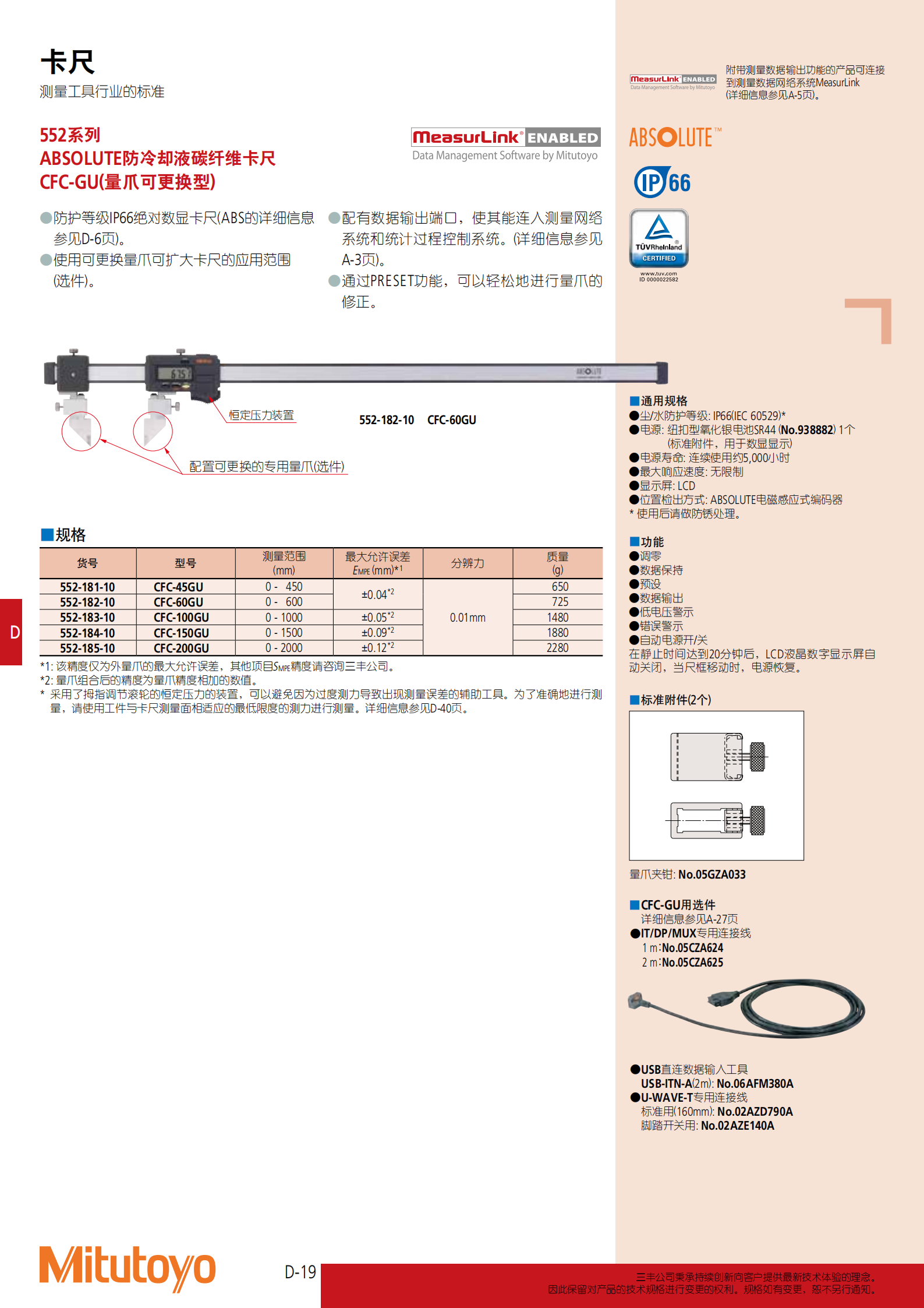 防護(hù)等級IP66絕對數(shù)顯卡尺ABS的詳細(xì)信息配有數(shù)據(jù)輸出端口,使其能連入測量網(wǎng)絡(luò)系統(tǒng)和統(tǒng)計過程控制系統(tǒng)。